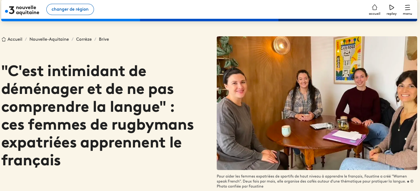 For the founder, the idea was born from a real need, a little over a year ago, in September 2024. Before settling in Brive last July, Faustine Rebeyrol-Brimeur launched Women Speak French in Bordeaux, Castres and Toulouse, always working with wives of rugby players. “They would come to me saying: ‘I need your help for appointments or homework,’” she recalls.